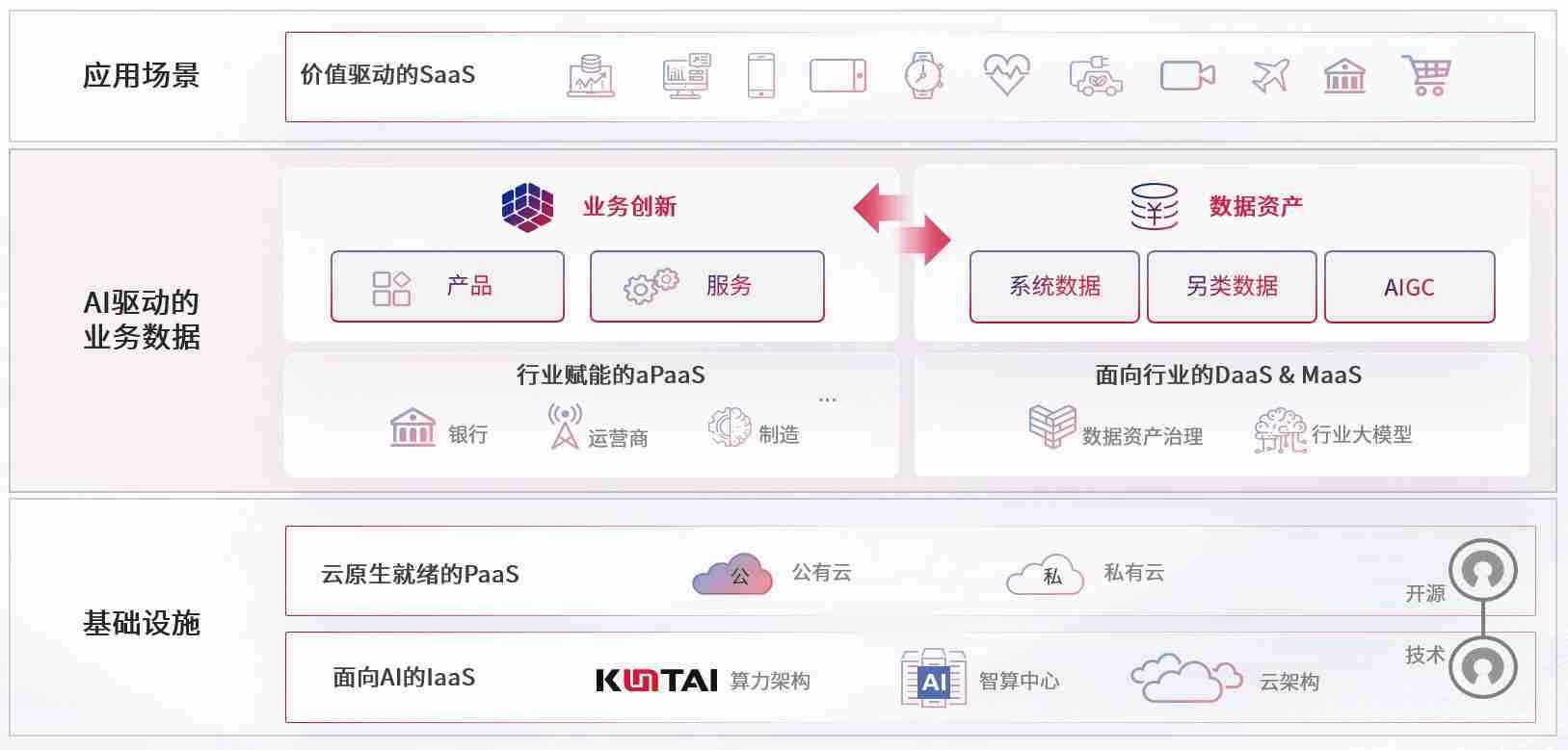 数字时代,,,围绕企业数字化转型的关键要素,,k豆钱包数码开创性的提出数云融合战略和技术体系框架,,,着力在云原生、、、、数字原生、、、AI原生和信创产业上架构产品和服务能力,,,,为处在不同数字化转型阶段的快消零售、、、汽车、、、金融、、医疗、、、政企、、、、教育、、、运营商等行业客户提供泛在的敏捷IT能力和融合的数据驱动能力,,,构建跨界融合创新的数字业务场景和新业务模式,,,助力企业级客户建立面向未来的核心能力和竞争优势,,,全面推动社会的数字化、、智能化转型升级。。。。